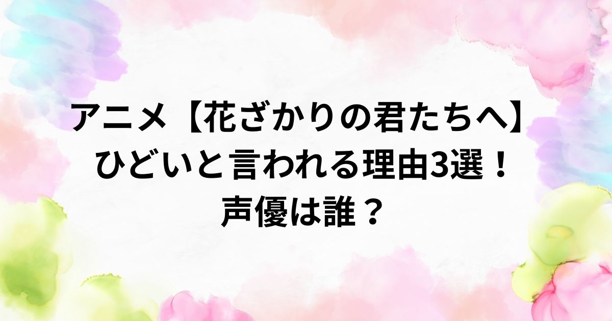 アニメ版・花ざかりの君たちへは、「ひどい」という評価が先行しやすい作品ですが、内容を整理すると理由は明確です。