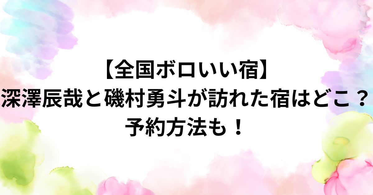 さらに、全国ボロいい宿の見逃し配信の視聴方法や、深澤辰哉さんと磯村勇斗さんが訪れたとされる宿の予約方法まで詳しくまとめます。