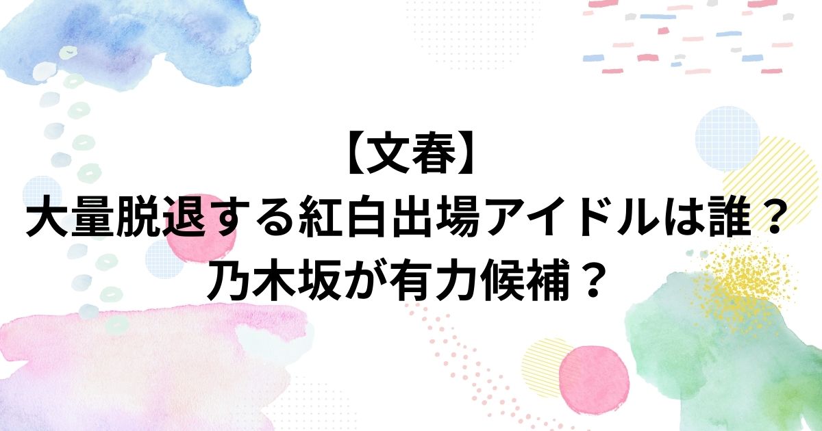 文春が報じると噂されている「大量脱退する紅白出場アイドル」について、現時点でグループ名は特定されていません。