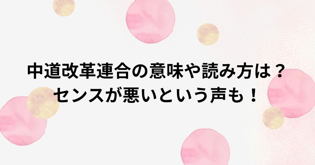 中道改革連合は左右に偏らない中道政治を掲げる新党で、読み方は「ちゅうどうかいかくれんごう」です。