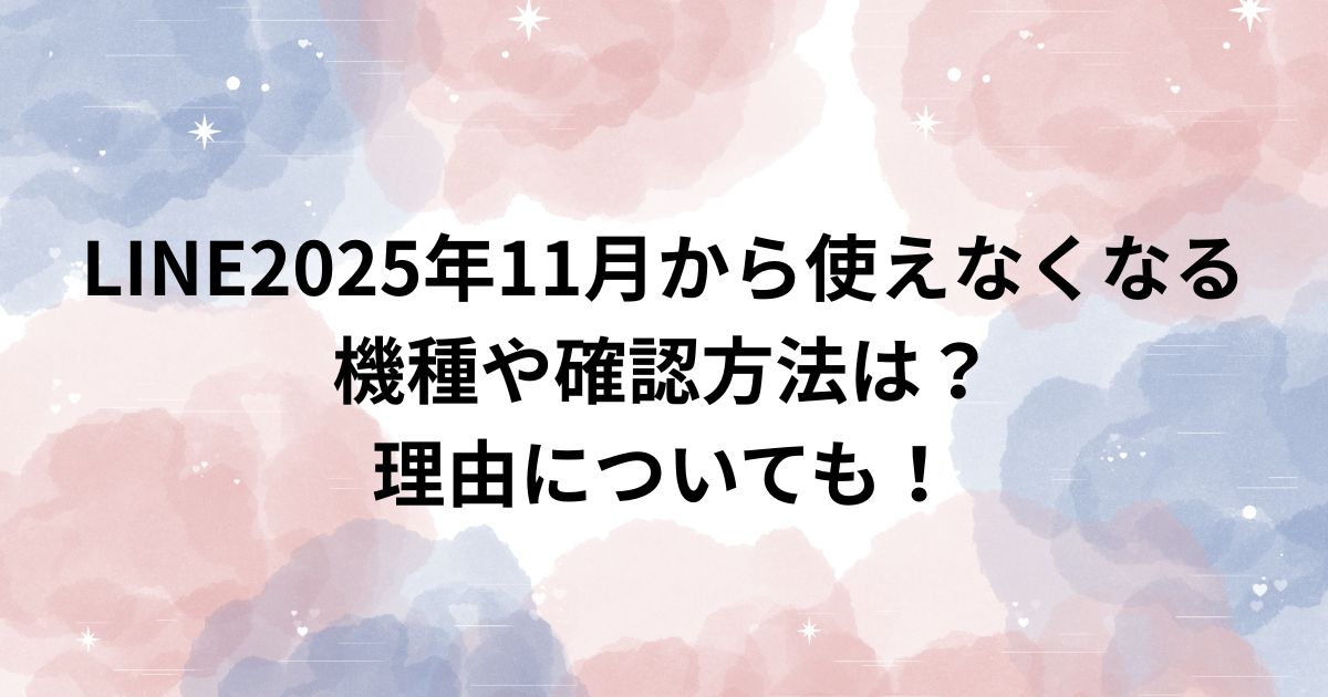 Android 7.1.2以下やiOS 15未満の端末、またはLINEアプリ13.20.0以下を利用している場合は、2025年11月から使えなくなる可能性があります。