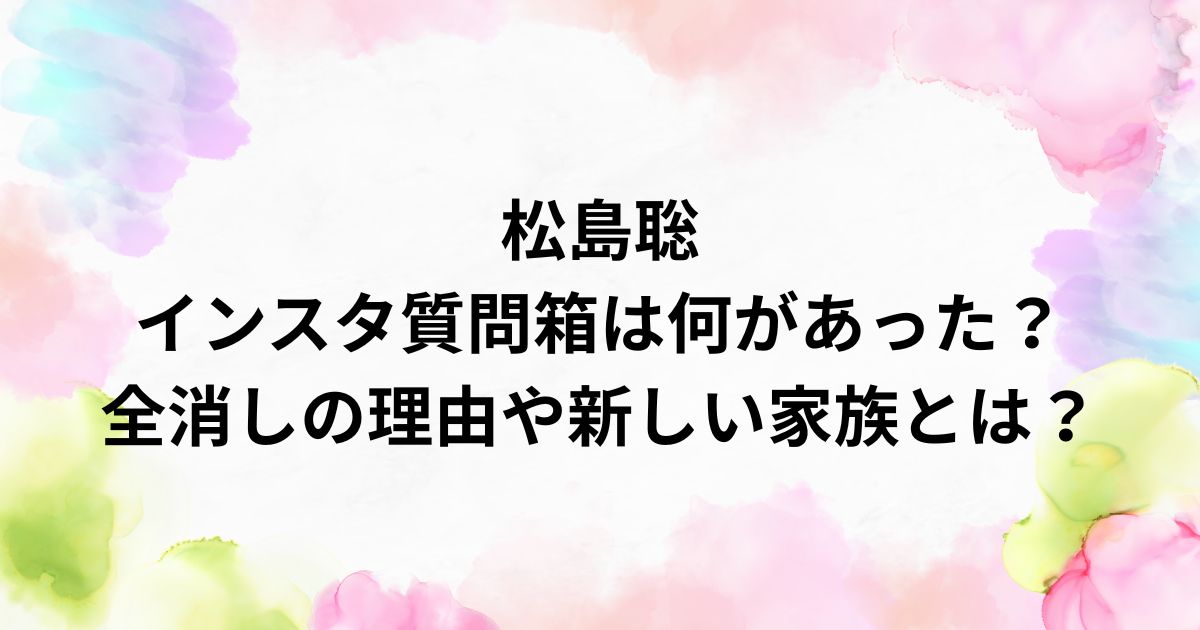 さらに、松島聡さんのインスタ全消しの理由や、新しい家族と表現した投稿の真意にも触れ、松島聡さんを巡る一連の出来事を総合的に解説します。