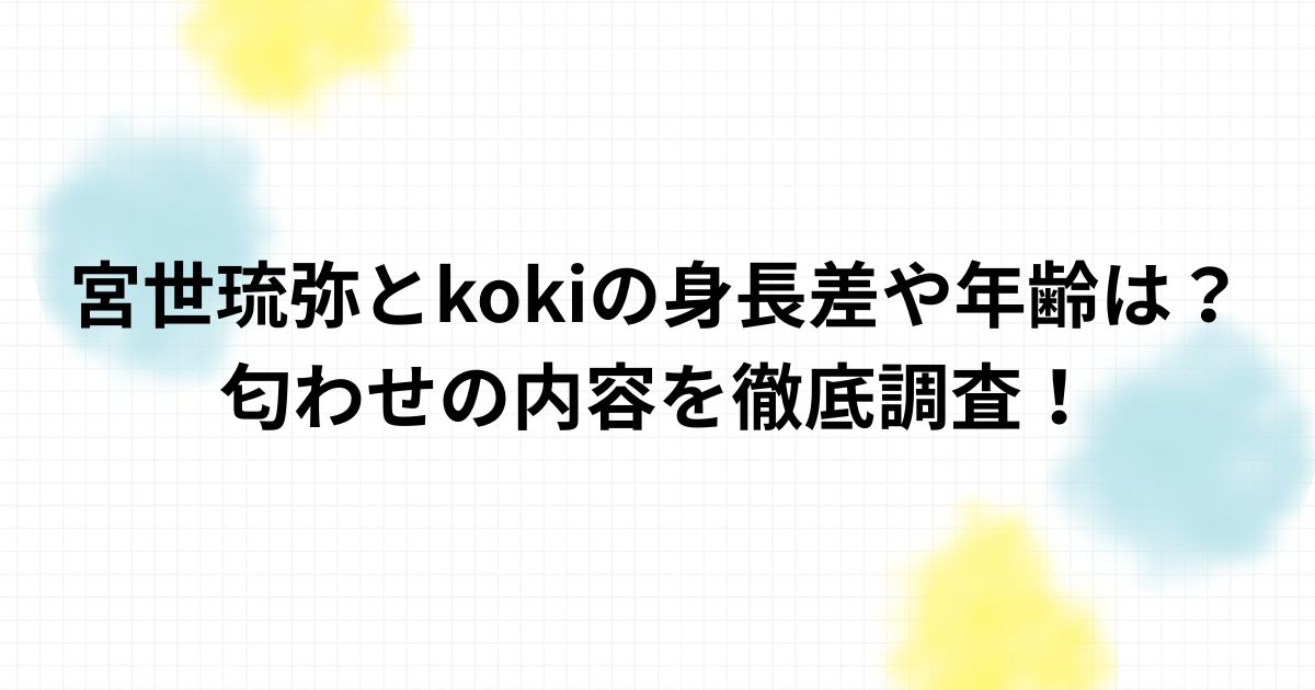 宮世琉弥さんとkokiさんについて、身長差や年齢、経歴、噂の背景まで総合的に整理しました。