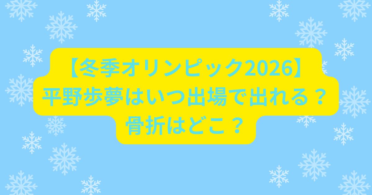 本記事では、冬季オリンピック2026における平野歩夢さんの出場日程や代表選考の情報、日本代表選手一覧、競技スケジュールに加え、怪我の詳細や復帰までの経緯、転倒動画の有無まで幅広く整理しました。