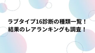 エンタメ ラブタイプ16診断の種類一覧!結果のレアランキングも調査! 恋愛傾向を客観的に理解する方法として、ラブタイプ16診断は注目されています。本診断は、恋愛を構成する4つの要素の組み合わせによって、16種類のタイプに分類されるのが特徴です。それぞれのタイプにはユニークなキャラクター名が付けられており、診断... 2025.09.22 エンタメ