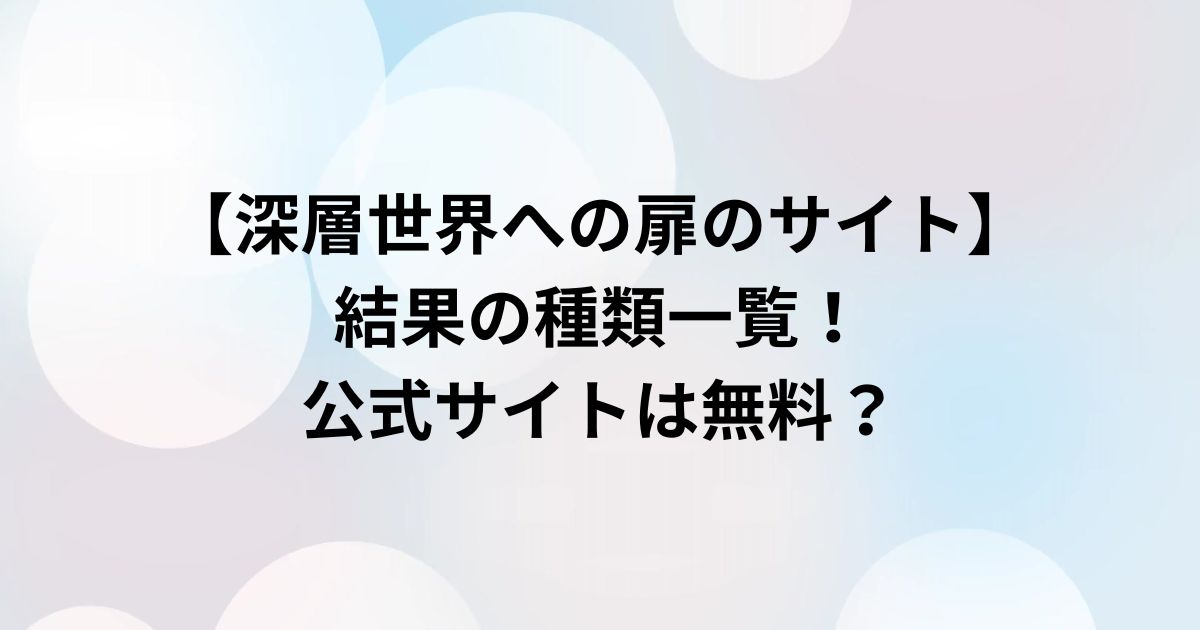 【深層世界への扉のサイト】結果の種類一覧!