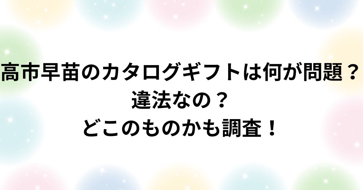 高市早苗さんとカタログギフトをめぐる論点を総合的に理解できる内容をまとめます。