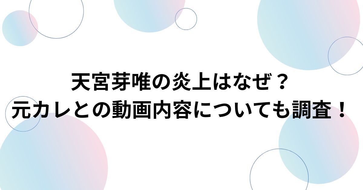 この記事では、天宮芽唯さんの炎上の理由や対応、SNSでの反応、さらに元カレに関する情報や曽根凌輔さんとの関係について詳しく解説していきます。